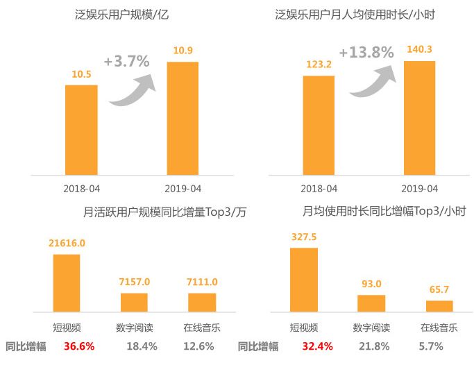 其中,短視頻類應(yīng)用的月活躍用戶超2億,增幅36.6%,位居泛娛樂(lè)應(yīng)用首位。