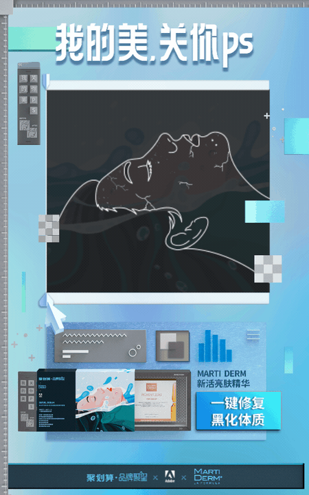 7月11日,國(guó)際軟件開(kāi)發(fā)巨頭Adobe聯(lián)合聚劃算發(fā)起“我的美,關(guān)你ps”創(chuàng)意營(yíng)銷活動(dòng),用“視覺(jué)系”思維賦能四大護(hù)膚美妝品牌。旨在將“美”的定義開(kāi)源,倡導(dǎo)“怎么美都不過(guò)分”的先鋒態(tài)度。禮盒、海報(bào)、視頻等物料,統(tǒng)一的“軟件系視覺(jué)風(fēng)格”讓人過(guò)目不忘。