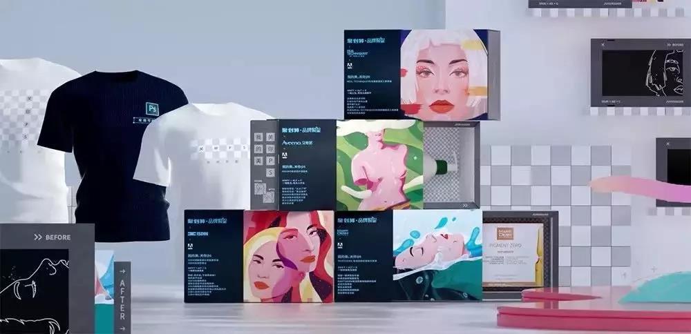 除此之外,Adobe和聚劃算還聯(lián)手時(shí)尚權(quán)威刊物《嘉人》推出軟件風(fēng)人物海報(bào),三維模特與二維平面軟件的結(jié)合展現(xiàn)破次元的設(shè)計(jì)美感,同時(shí)人物造型與禮盒的設(shè)計(jì)相得益彰。